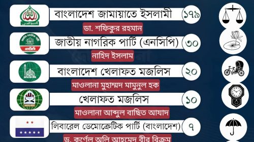 জামাত জোটের দলীয় প্রতীক ও চূড়ান্ত তালিকা। আগামী ত্রয়োদশ সংসদ নির্বাচনে জামাত জোট কোন পার্টি কোন আসনে লড়াই করবে, তার চূড়ান্ত তালিকা প্রকাশিত হলো। শেয়ার করতে পারেন _____ বাংলাদেশ জামায়াতে ইসলামী মোট আসন: ১৭৯…